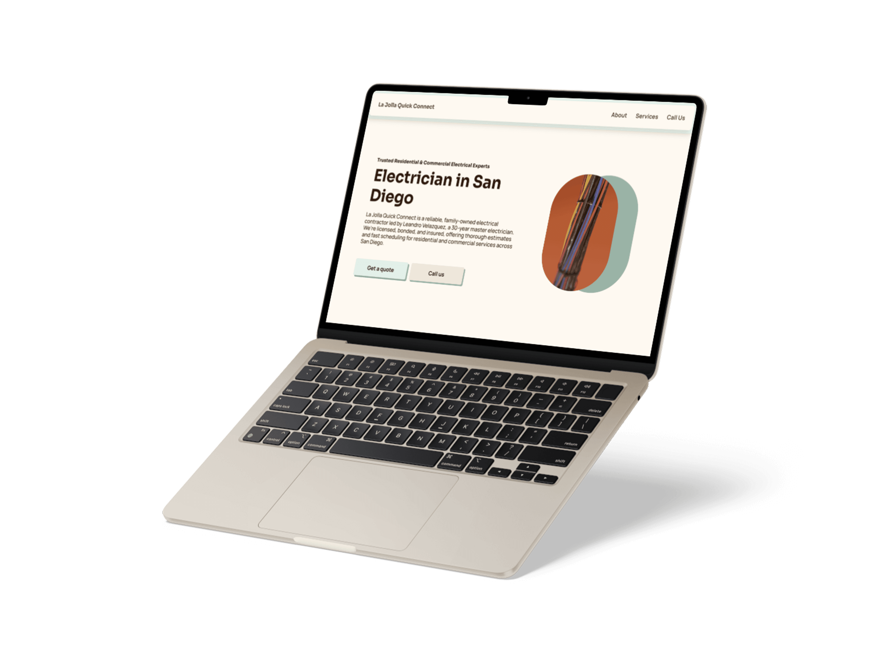 A 30-year master electrician with an outdated, bare-bones website and a tight budget, forcing them to rely on word of mouth for new business. The site lacked information about their services, had low-resolution images, and didn’t accurately reflect the quality of service or neighborly professionalism La Jolla Quick Connect provides. LJQC hired me to craft a microsite that would set them apart from the competition and set them up for success.